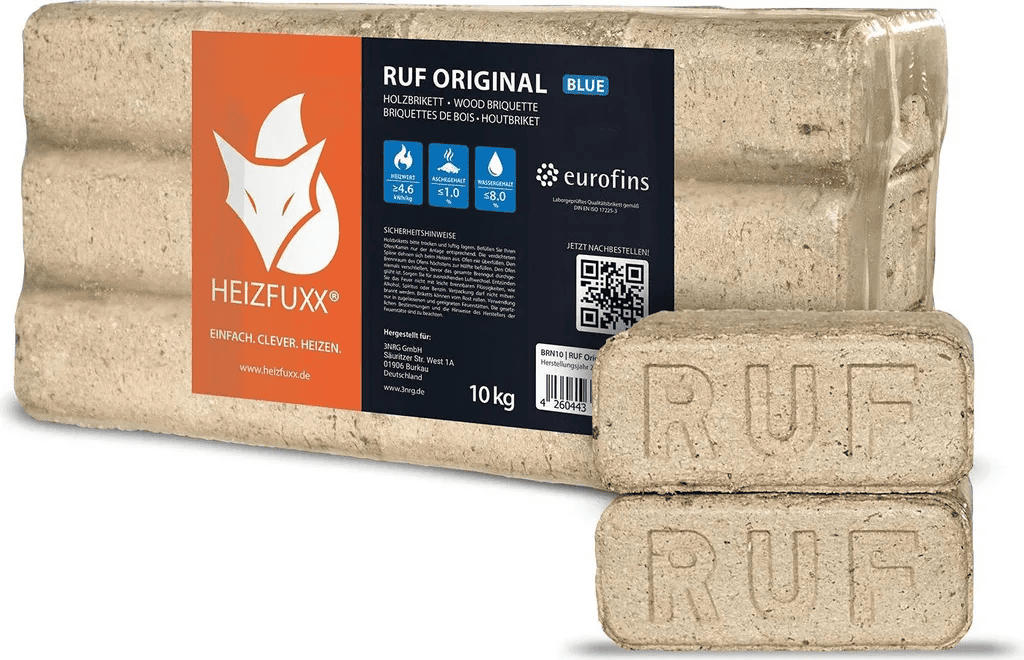 Die RUF Original Blue Weichholzbriketts bieten eine effiziente und umweltfreundliche Heizlösung für deinen Kamin oder Ofen.